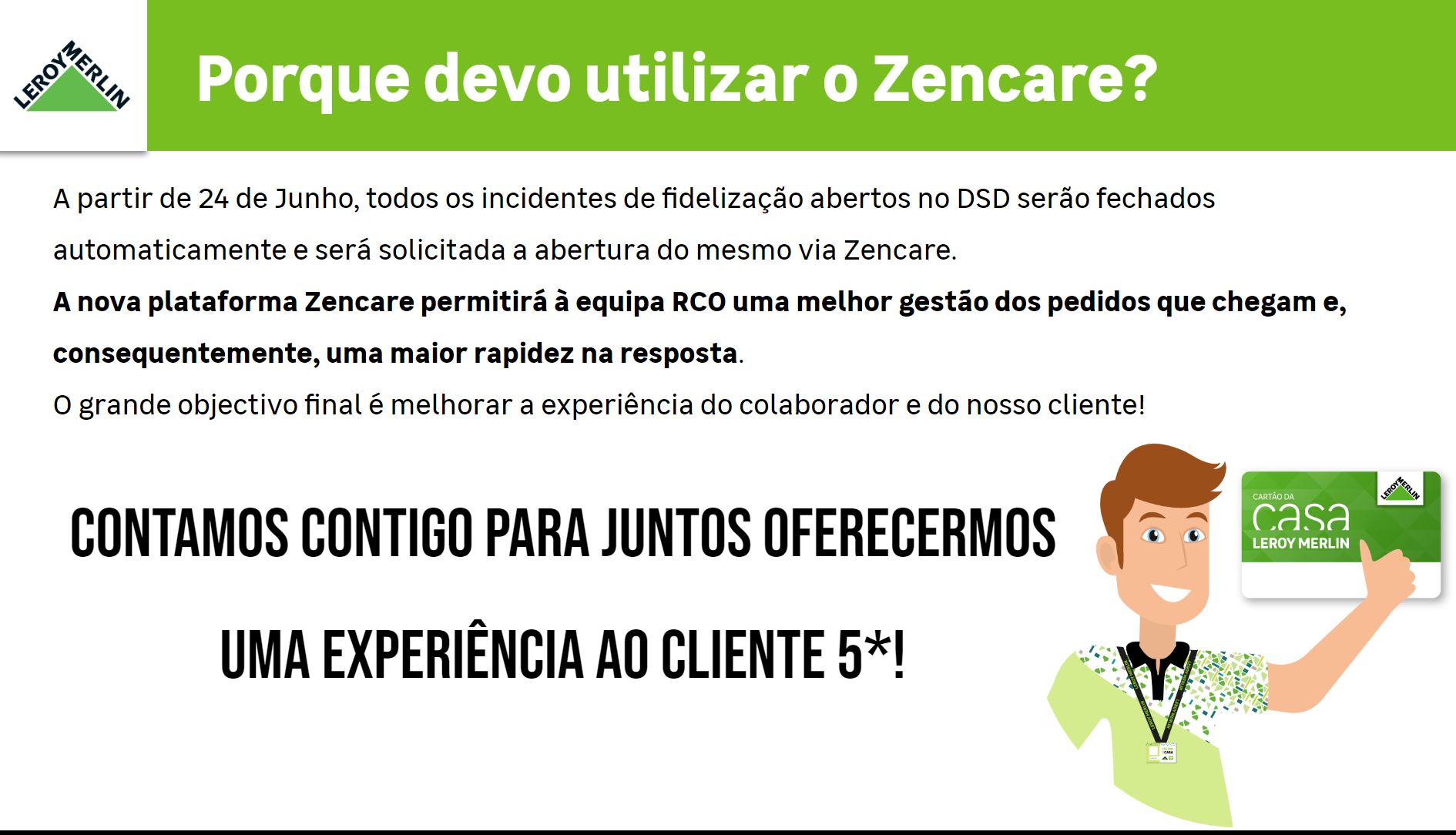 Sabias que para abrir incidentes já não deves utilizar o DSD mas sim o Zencare?